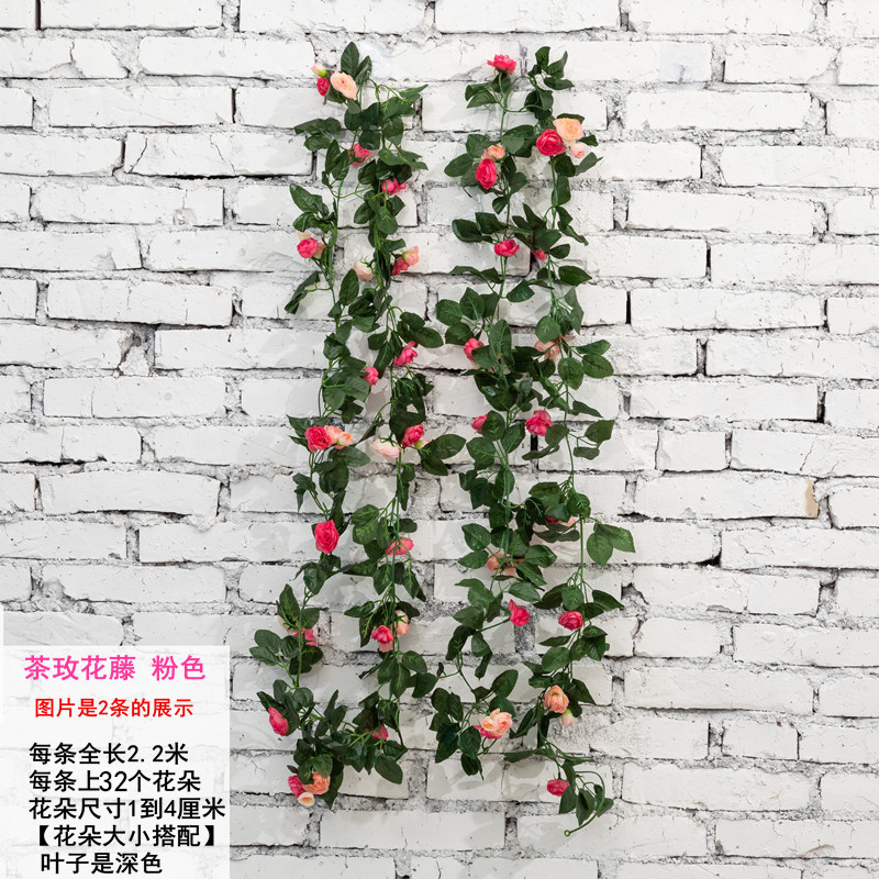 Emulation Rose Rattan Bar Wall-mounted Fake Flowers Vine Heating Piping Indoor Living-room Living-room Wedding Decoration Overhanging Ceiling Plastic Flowers