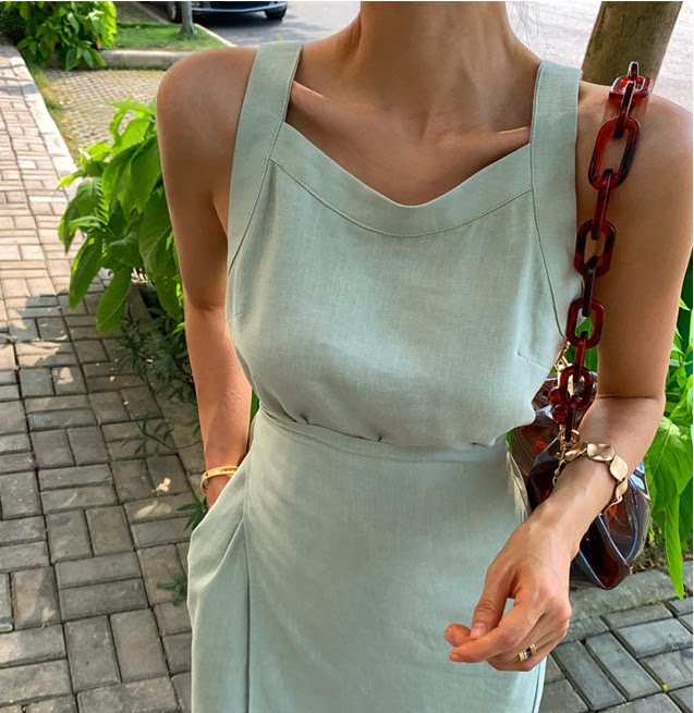 South Korea's 2022 spring summer new cotton linen wrapped in a piece of cashew with a slim harness and a long ocean dress.
