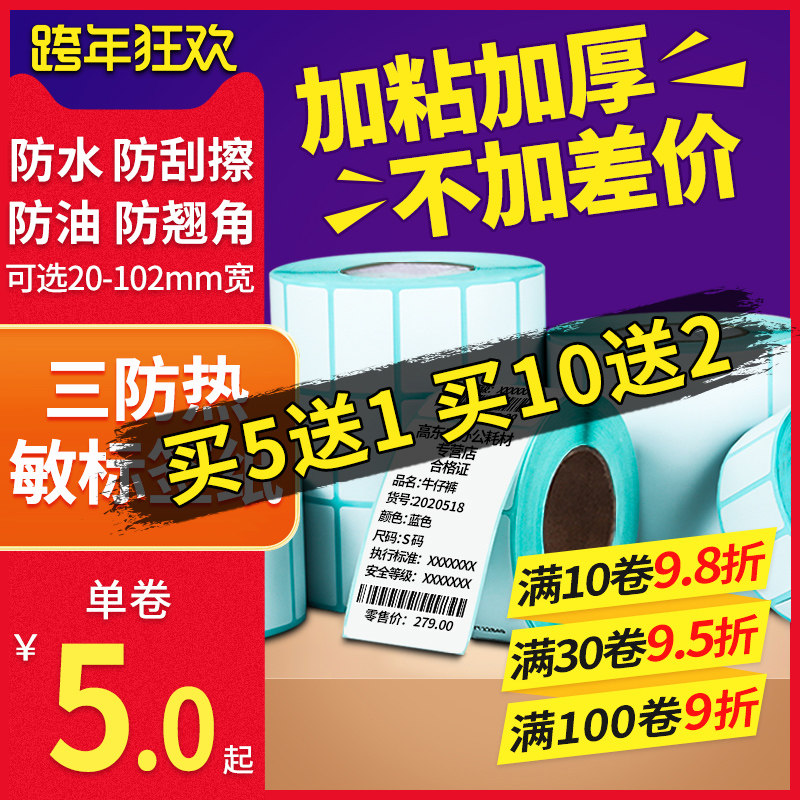 Three-proof thermal label paper roll 60*40 20 30 50 70 80 90x100 barcode Jiabo printer adhesive two-dimensional code milk tea supermarket food electronic scale weighing service