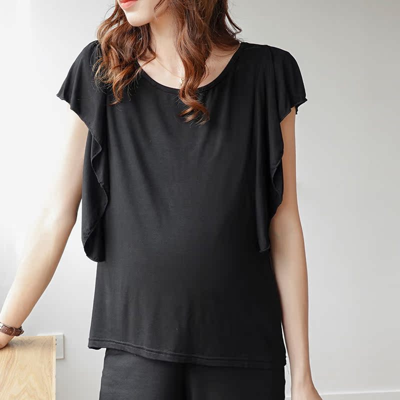 Modale Postnatal Suckling Clothing Damp Spicy Mother Fashion Outside of Breastfeeding Shirt Lotus Leaf Side Breastmilk Short Sleeve T-shirt Gestational Woman