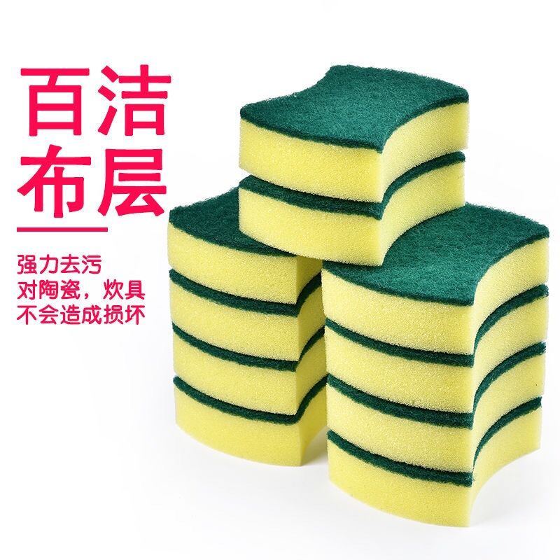 Strong decontamination kitchen dishwashing sponge scrub pot artifact household scouring pad rag absorbent cleaning supplies double-sided