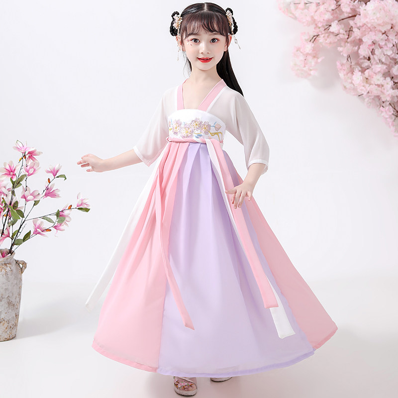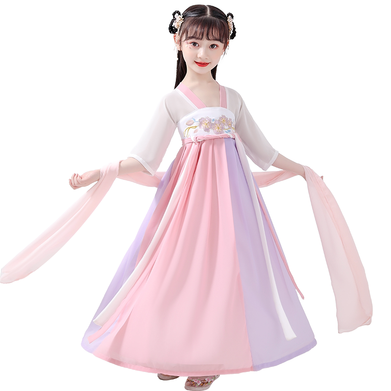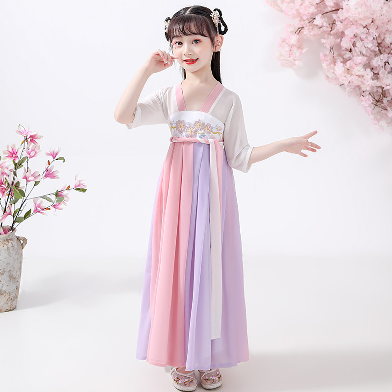 Hanfu Girls Kimono Dress Chinese style summer children's costume Super Fairy elegant Cherry Blossom Princess dress girl Tang dress