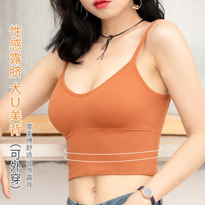 Beauty back bra camisole female one-in-one new net red explosion style gathered sexy big U inside and outside wearing a base coat