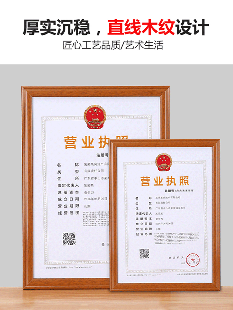 A3 Business License Solid Wood Photo Frame A4 Authorisation Certificate Patent Award-Shaped Frame Diamond Frame Diamond Frame Hanging Wall A5 Pendulum Table Custom-Taobao