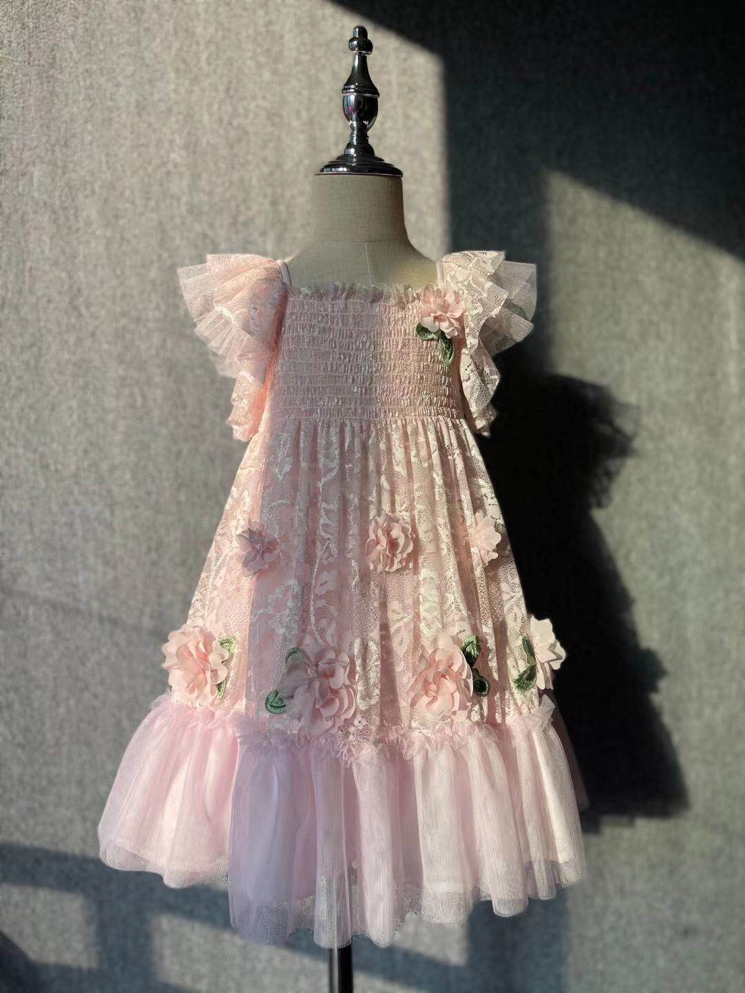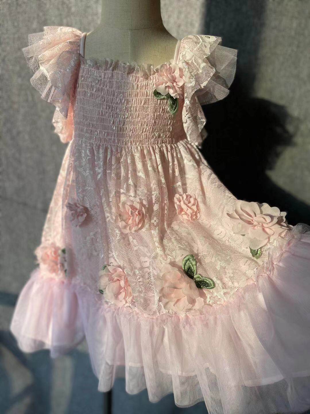 High-end foreign trade girls flower skirt girl dress skirt princess skirt cotton suspender pink skirt (little happiness)
