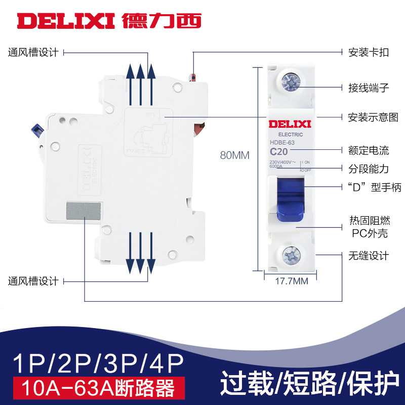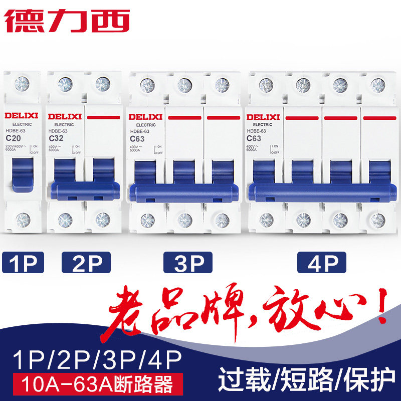 Delixi air switch circuit breaker small household 1P2P total open protection knife insurance DZ47-63A
