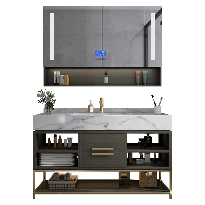 Rock plate one-piece basin Solid wood bath cabinet combination Modern simple light luxury intelligent hand wash basin Bathroom sink