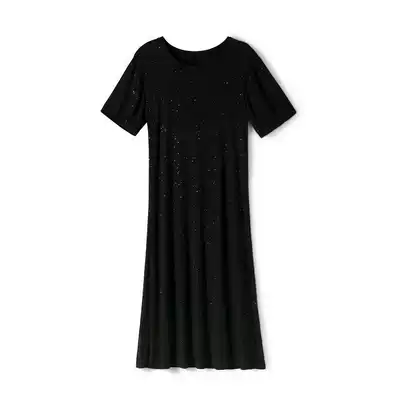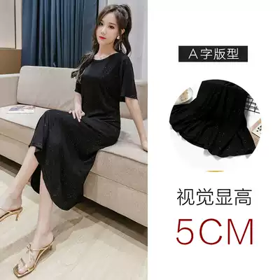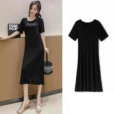 2021 new short sleeve dress women Summer waist thin temperament big pendulum a long dress black modal skirt