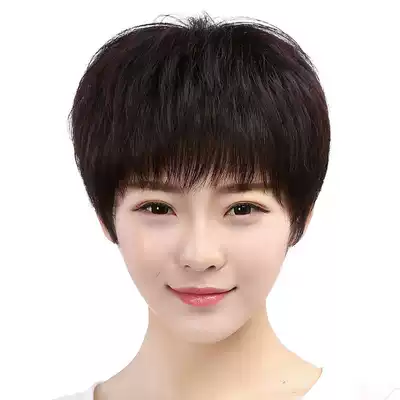 Middle-aged and elderly wigs, female short hair, round face, real hair, mother, natural and realistic, ladies, whole real hair wig, headgear