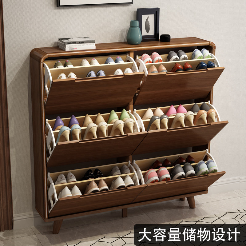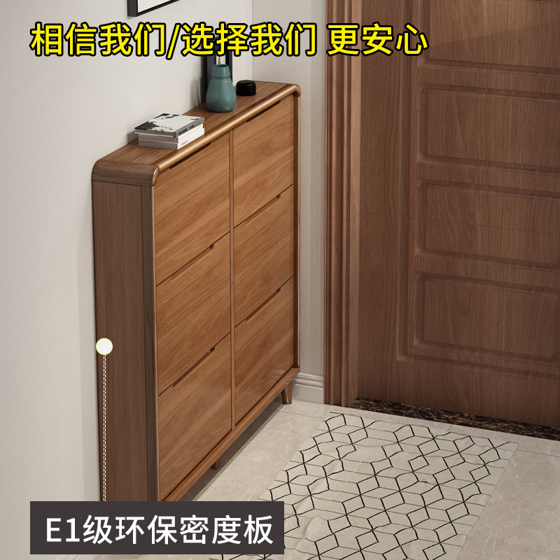 Shoe cabinet solid wood frame large capacity ultra-thin narrow home doorway into the small tipping bucket type simple modern foyer cabinet 17cm
