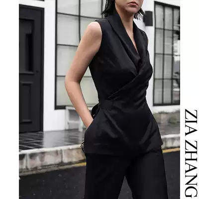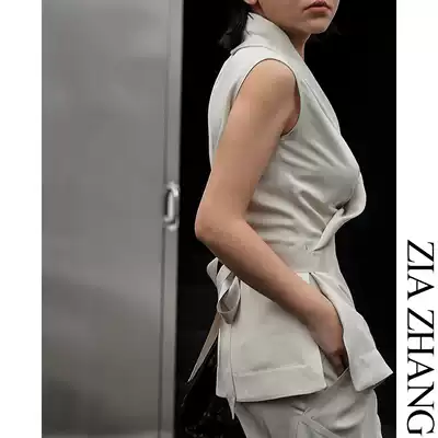 Z boss full screen senior green fruit collar slim sleeveless wrap jacket acetic acid medium and long version lace-up shoulder female