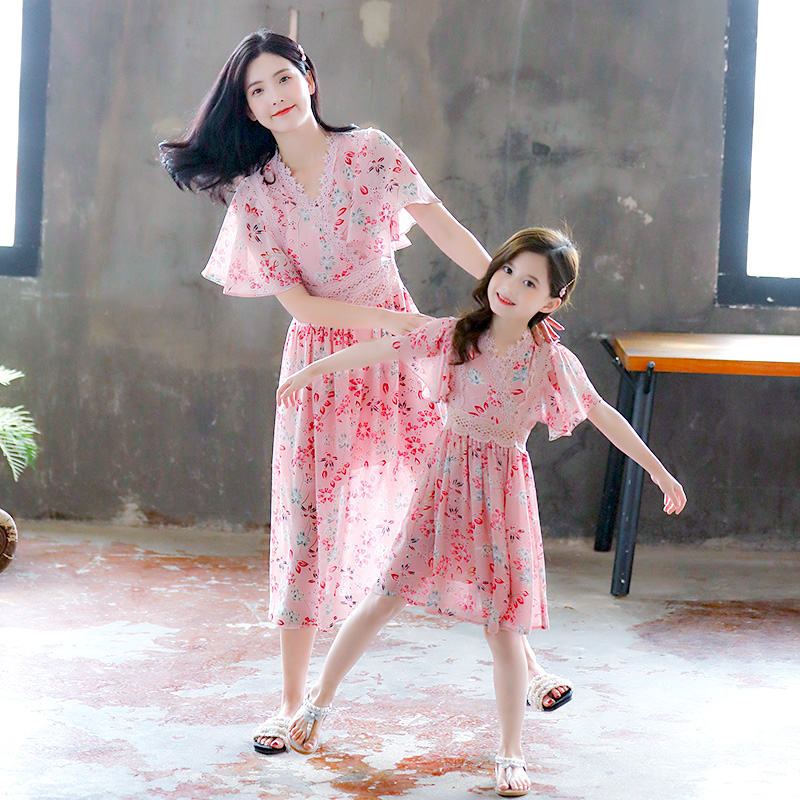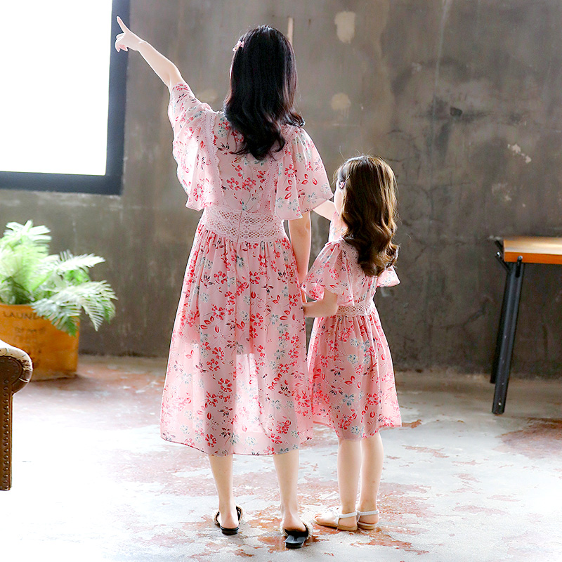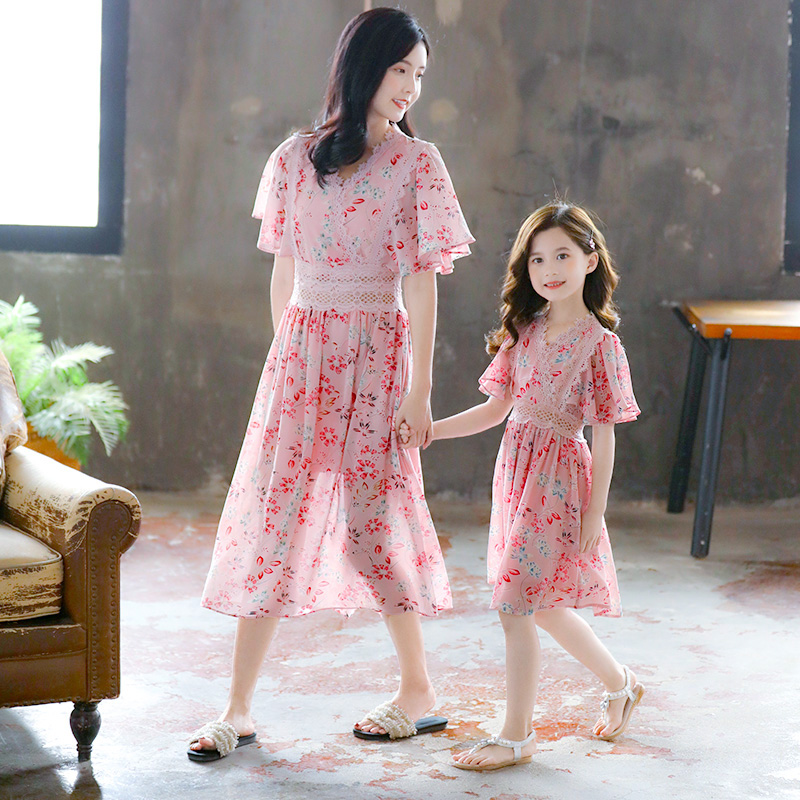 Mother and daughter in a dress.