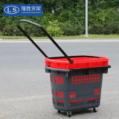 Extra large L No. 60 liters capacity plastic shopping cart lever with four-wheel dual-purpose supermarket shopping shopping shopping basket