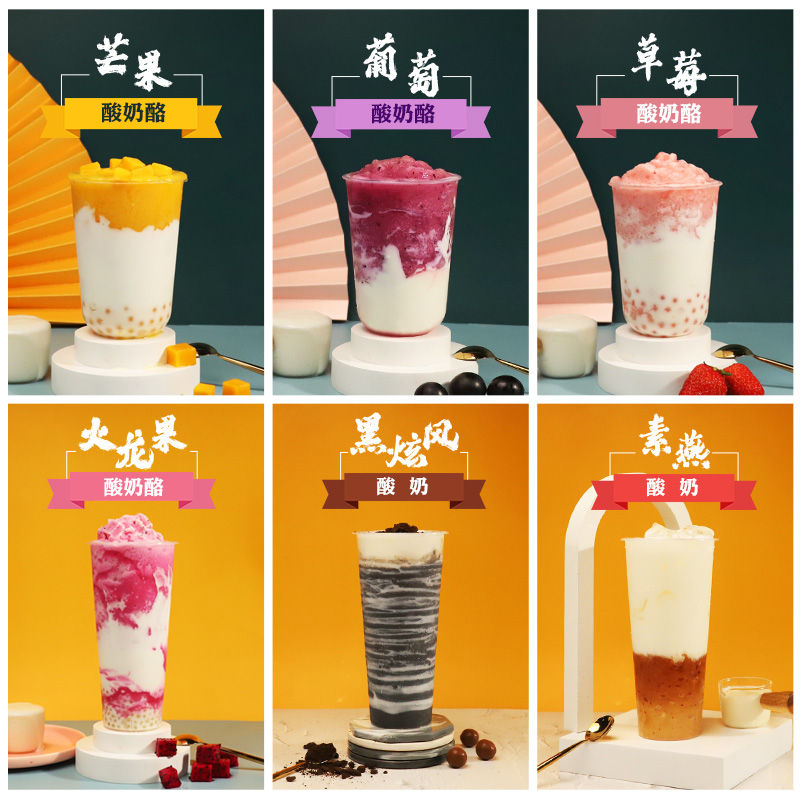 Sour milk powder 1kg (core raw material) rhyme jasmine green tea 500g (generic raw material) mango sauce 1kg (mango yogurt cheese) golden pupil 800g (mango yogurt cheese) grape juice 1