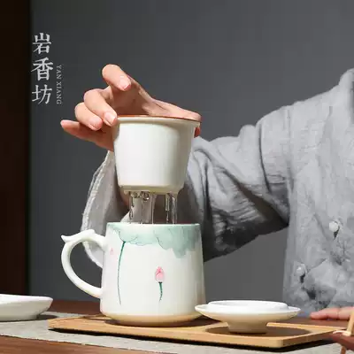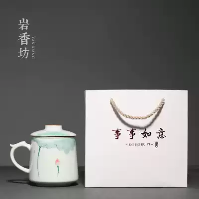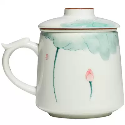 Hand-painted pink lotus water Cup hand-painted pink green lotus water cup gift box hand-painted pink green lotus water cup tea can gift box hand-painted pink green lotus water cup tea pot gift box hand-painted pink green lotus water Cup disc tea
