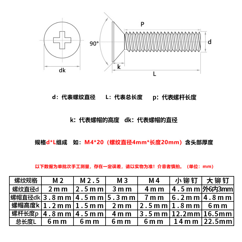 Cross flat head screws M2M2 5M3M4 screws KM fins buckle electronic small screw spring rivets