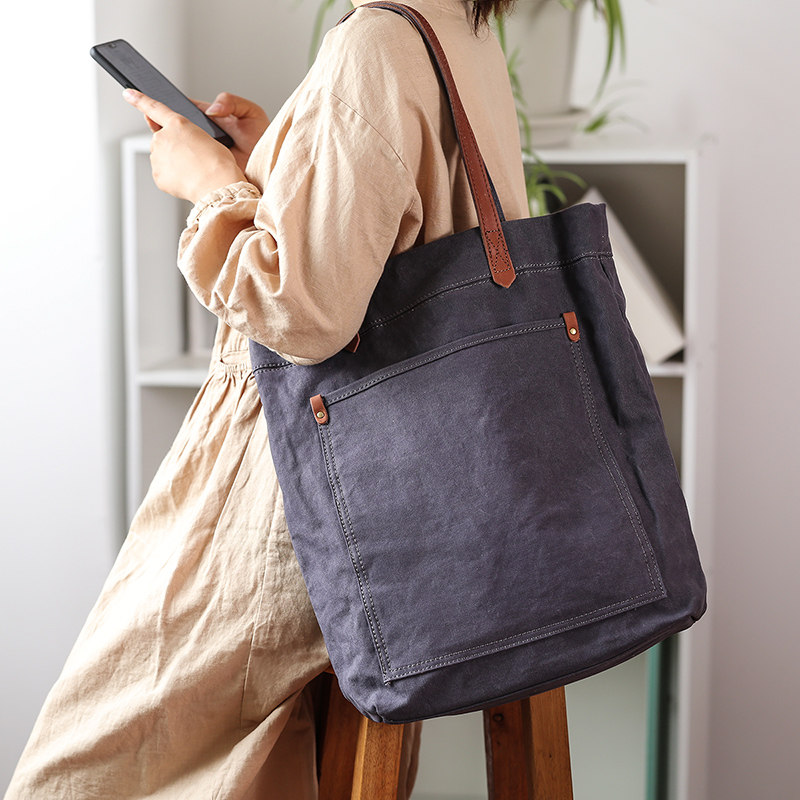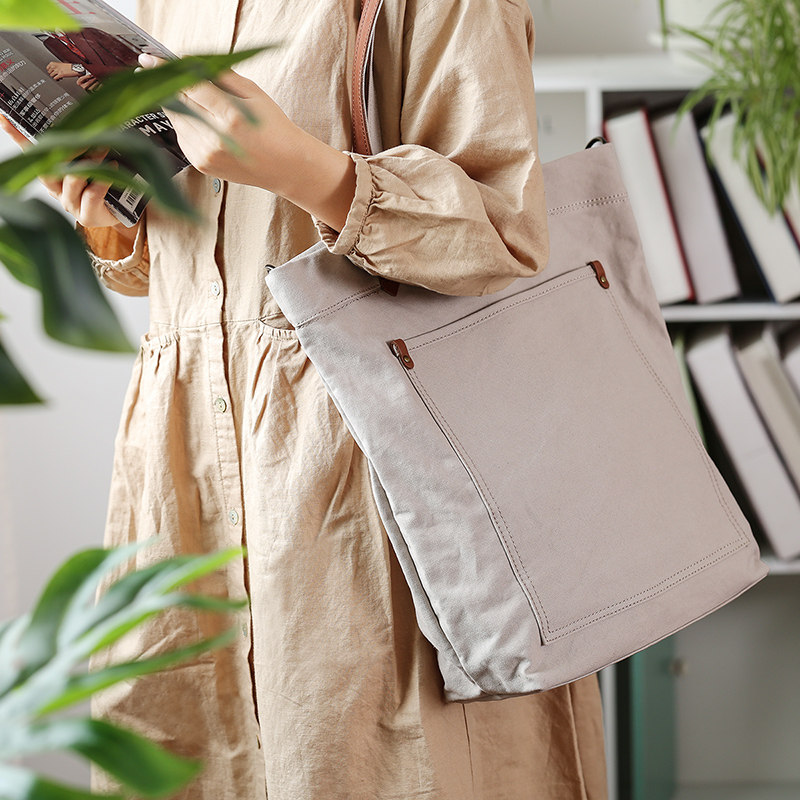 Xiaosheng Youmi Canvas Women's Bag Shoulder Bag Literary Simple Casual Tote Bag Vertical Japanese Trend Tote Bag