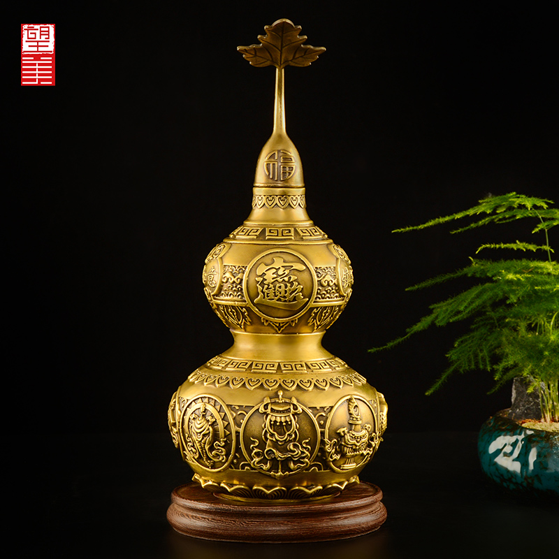 Eight Precious Copper Plinth Pendulum Large Number Office Living Room Gourd Brass Opening Open Lid Hollow