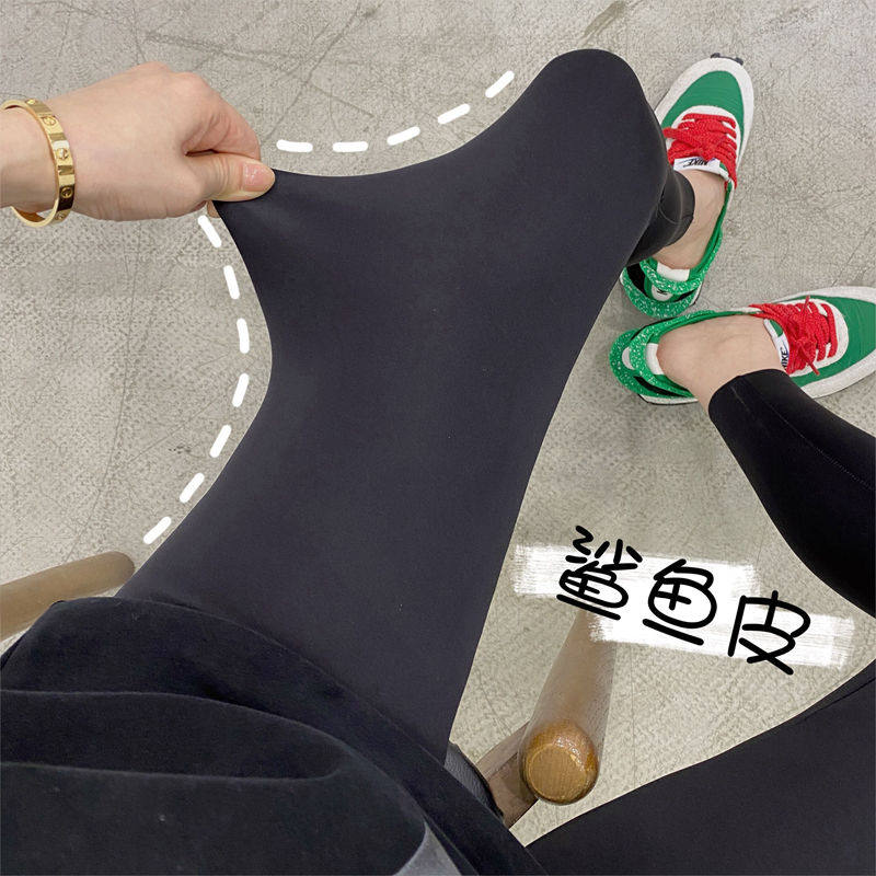 Black shark pants leggings women wear autumn and winter plus velvet thickened height waist tight belly elastic hip yoga pants
