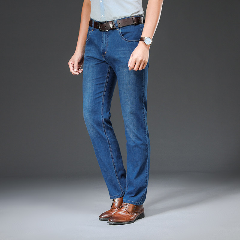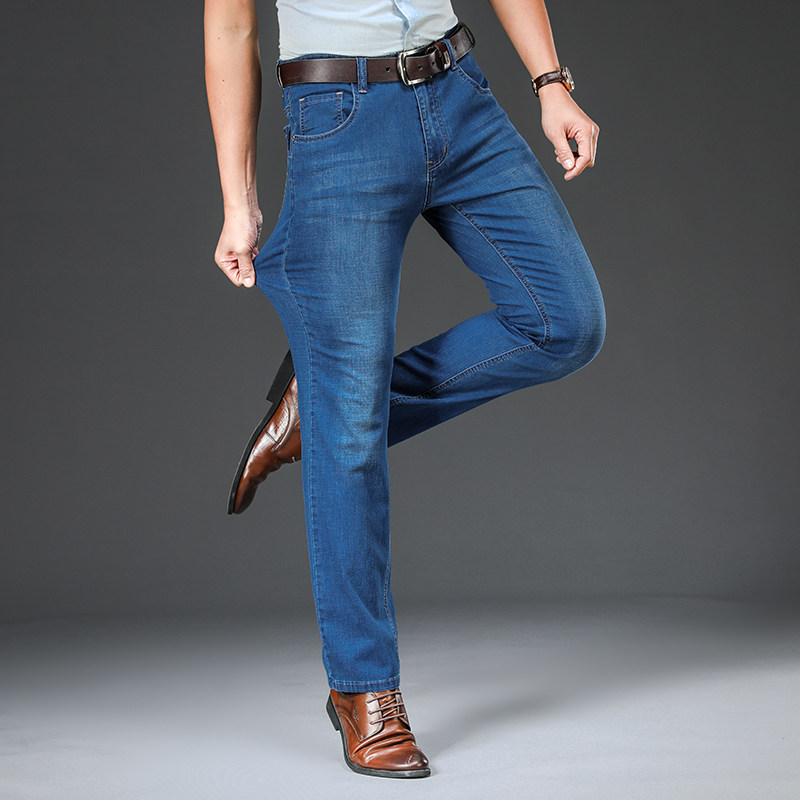 Men's Elastic Jeans Straight Barrel Loose Long Pants Autumn Winter Autumn Winter Ice Silk Sashimi Casual 100 Hitch Pants