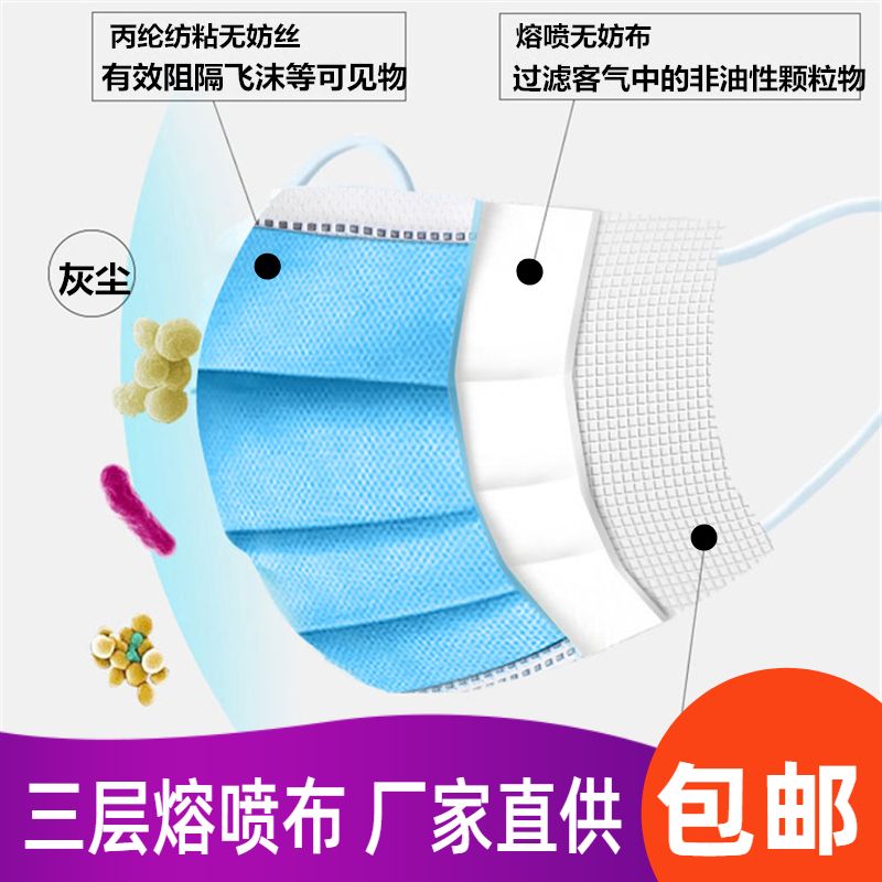 100 only Disposable Mask Three Layers Protective Melt Spray Cloth Dust Anti Foam Adults Thin Air Permeable Spot