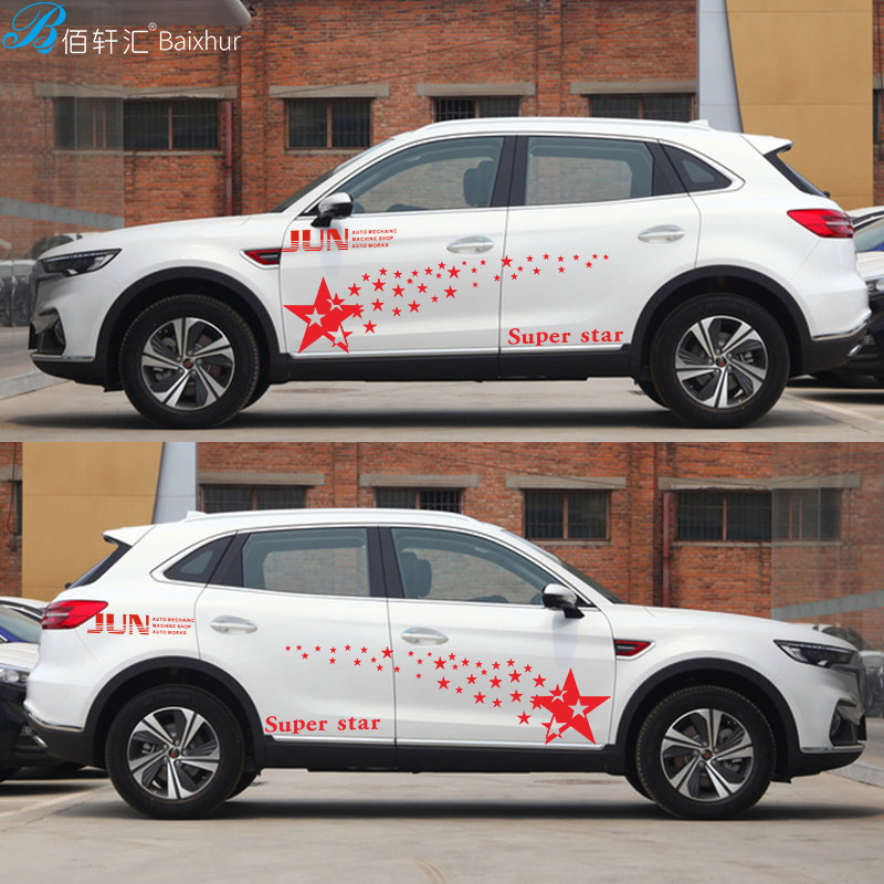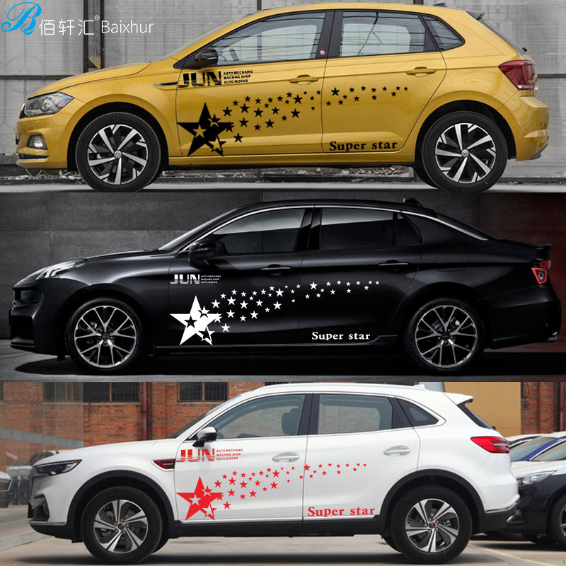 Star pentagram car stickers scratches to block personality car stickers body pull flower decoration modified waist line decals