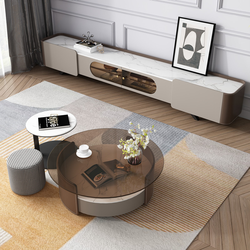 Tea table Three sets of tea table Three sets TV cabinet rock plate light and luxurious TV cabinet