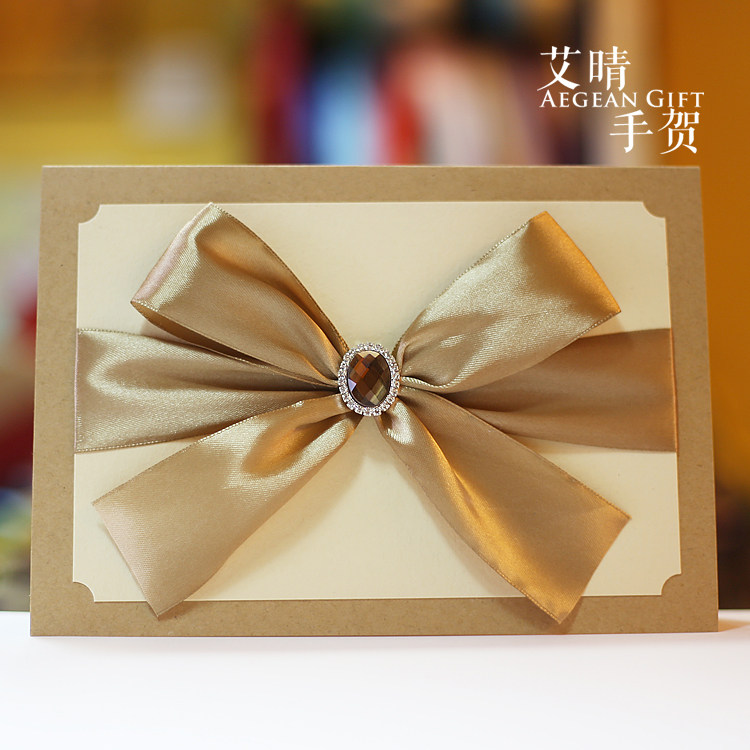 Ai Qing hand bow knot gem three-dimensional handmade greeting card business to send customers birthday thanks graduation thanks teacher gift