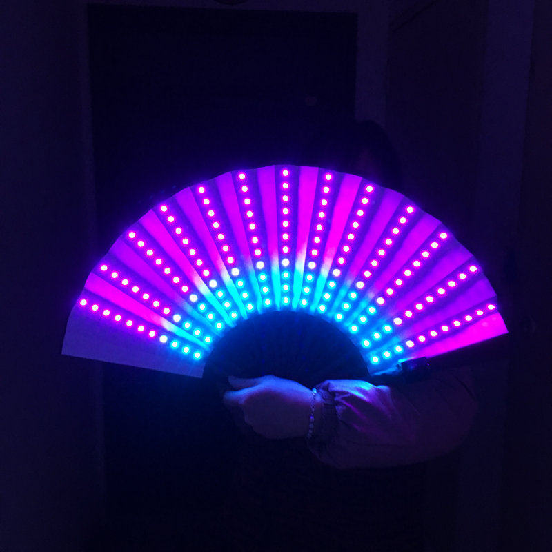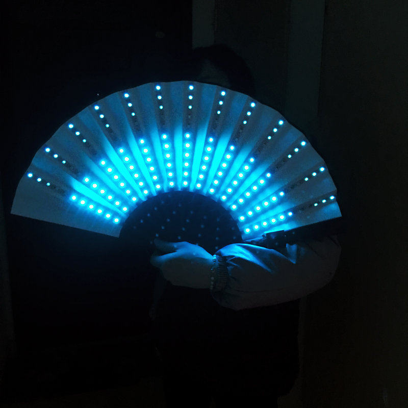 Bar bouncy fan led luminous Net red fan atmosphere props customized electric syllable 10 inch magic color silk cloth fan