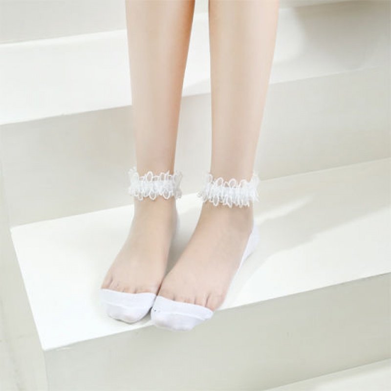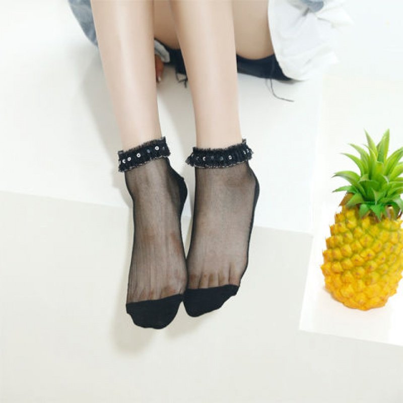 3 5 pairs of lace women's socks short tube spring and summer loose stockings glass stockings non-slip thin crystal socks