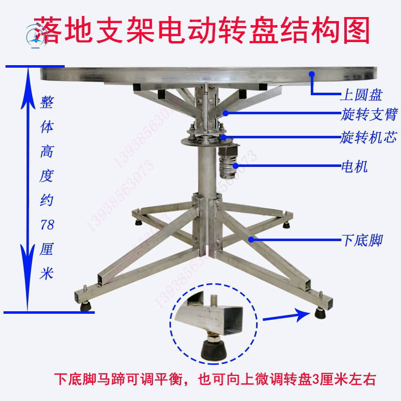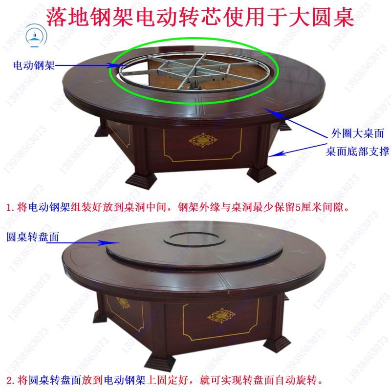 Floor steel frame electric turntable large round table transfer core automatic rotary mechanism remote control throttle mute solid wood table accessories