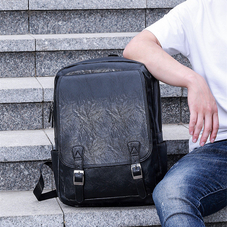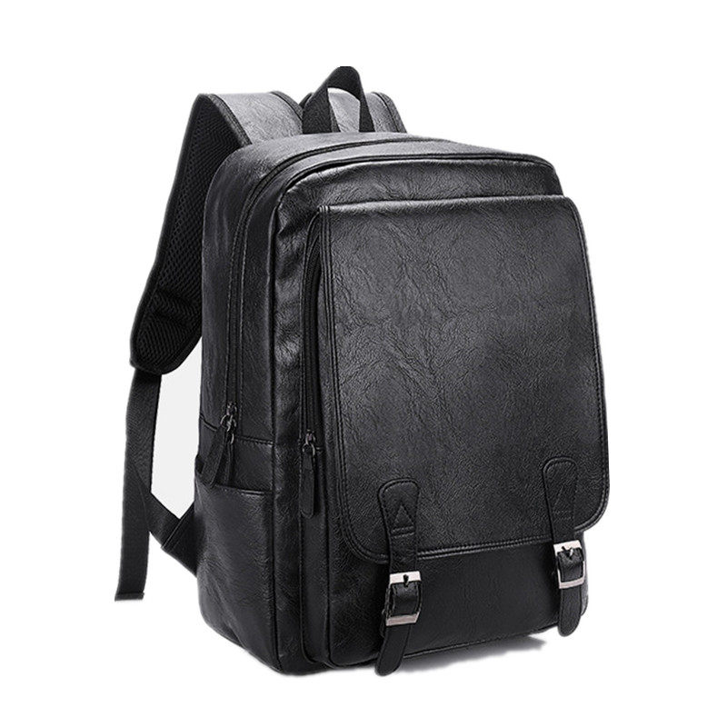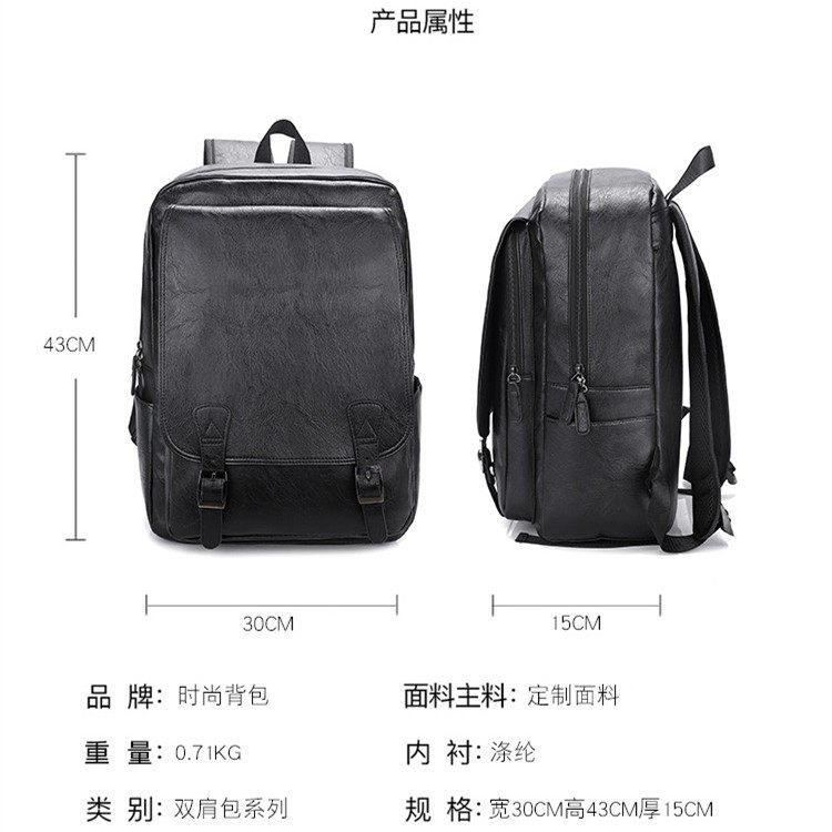 Youth PU double shoulder bag male street trend casual fashion soft leather face Shoulder Bag Han Version Wind Student School Bag Leather Bag