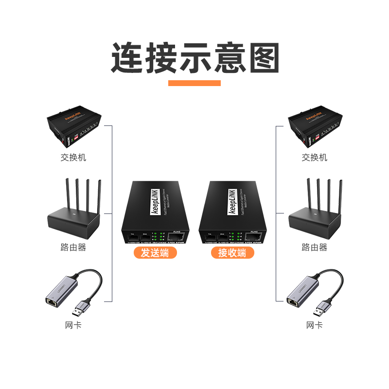 keepLINK fiber optic transceiver Gigabit single-mode single fiber 20KM long-distance transmission 5V multi-optical multi-electrical network switch monitoring optical transceiver photoelectric converter receiver transmitter