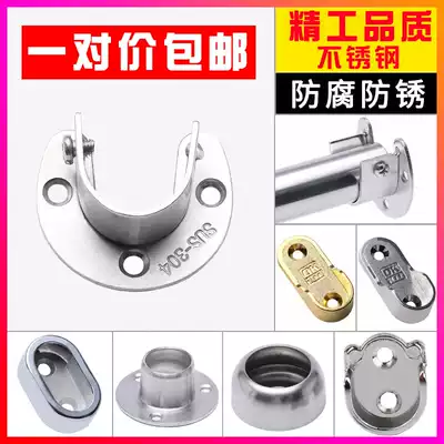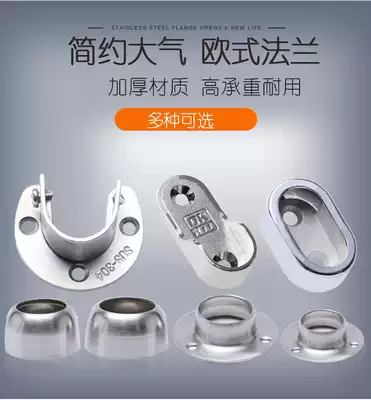 Thickened 304 stainless steel flange seat Wardrobe hanging clothes rod holder Round tube base Clothes rod holder hardware accessories