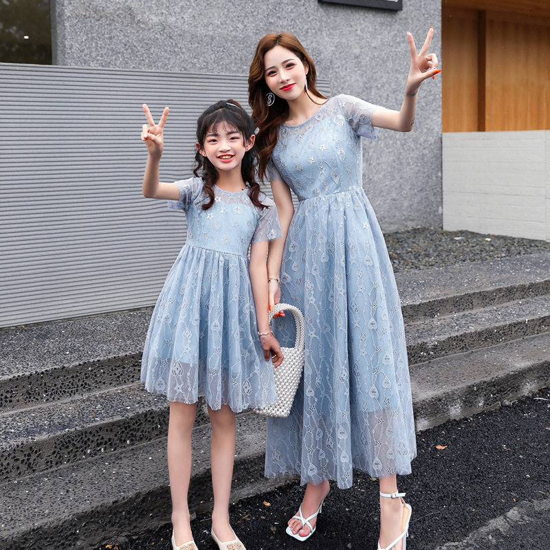 Sweet fashion children's dress summer dress 2021 new lace - colored dress paternity dress gas