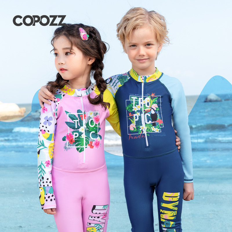 COPOZZ Children's swimsuit male and female body swimming clothes small CUHK child long sleeve sunscreen child wetsuit suit