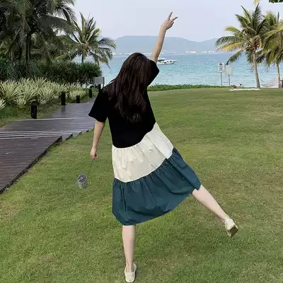 Pregnant women's summer dress tide mother 2020 Summer Net Red foreign school skirt Heben wind summer stitching dress