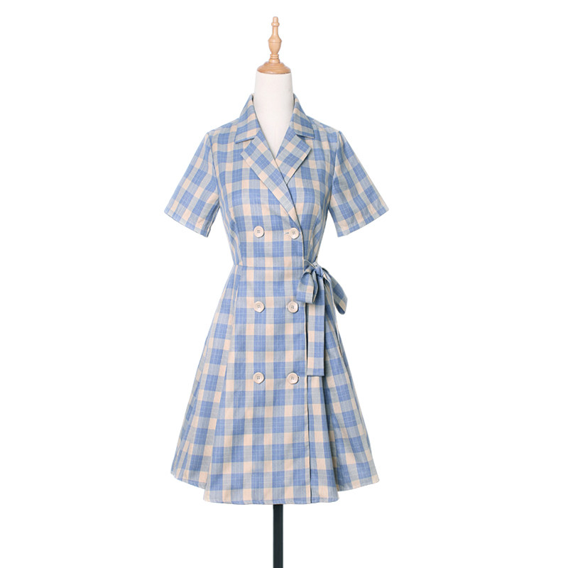 Suit and dress female summer small fresh college style French sweet first love girl plaid double breasted jk uniform