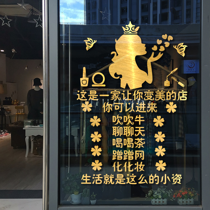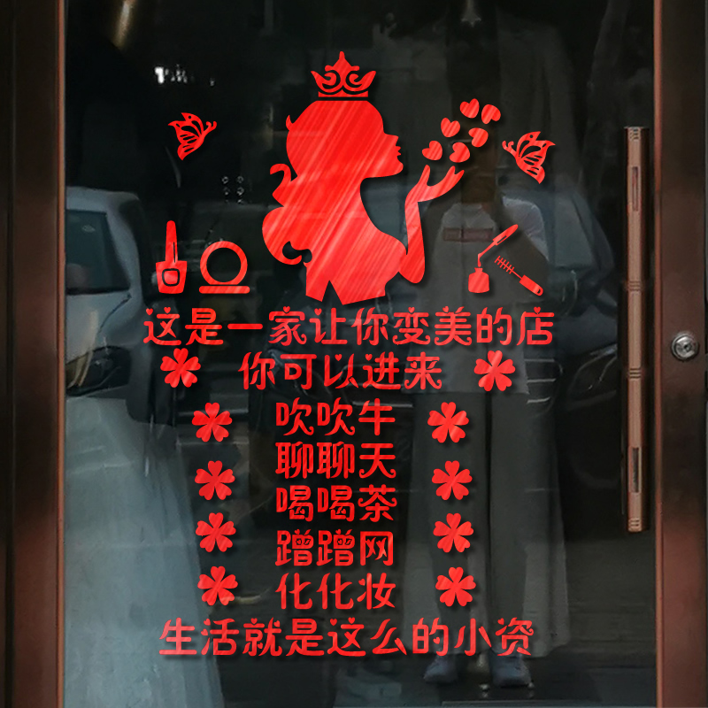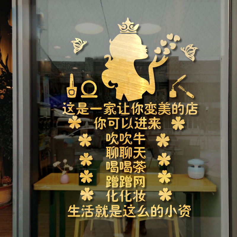 Beauty salon glass door stickers personality manicure and eyelashes cosmetics shop window layout decoration creative wall stickers
