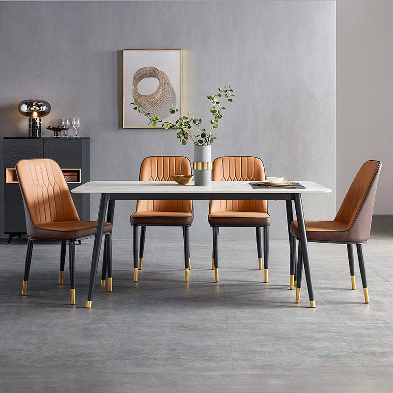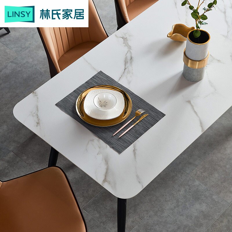 Lin's Home Modern Light Lavish Rockboard Dining Table And Chairs Marble Textured Dining Table Home Mix Lin's Wood Industry JI1R-Taobao