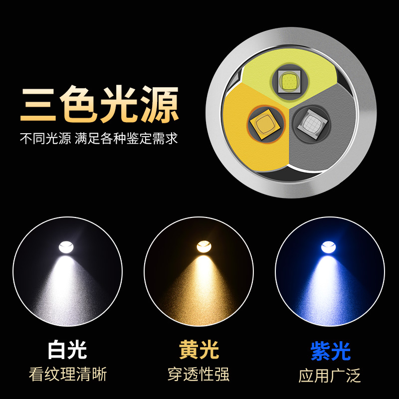Jade identification flashlight special high light ultra - bright small caliber professional jewelry three - light source 365 nm purple light