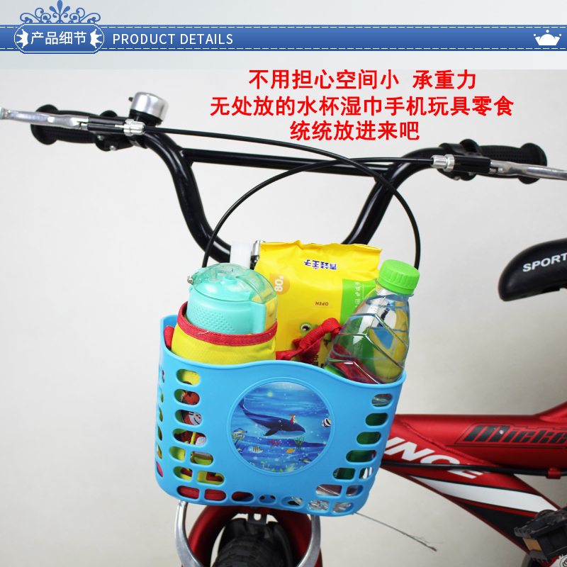 Children's bicycle basket stroller scooter front basket bicycle basket front hanging blue basket frame storage accessories