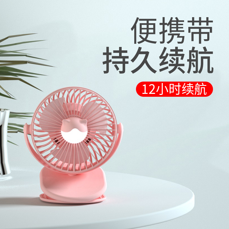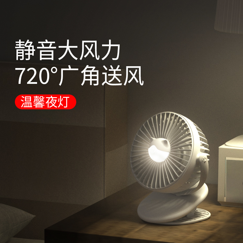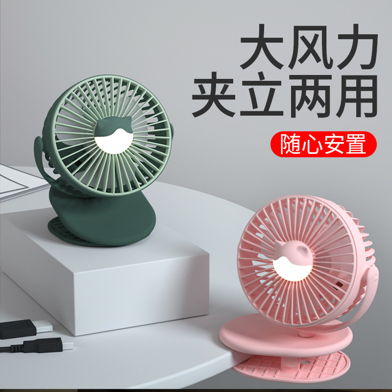 Desktop electric fan clip-type student dormitory mini ultra-quiet big wind night light charging stroller small fan