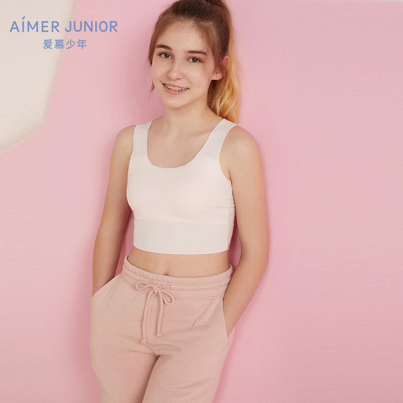 Adoring children 9-year-old adolescent girl student first stage mid-length vest without support bra 2-piece bag