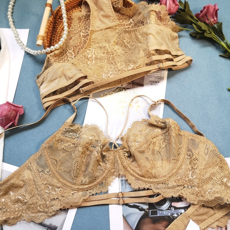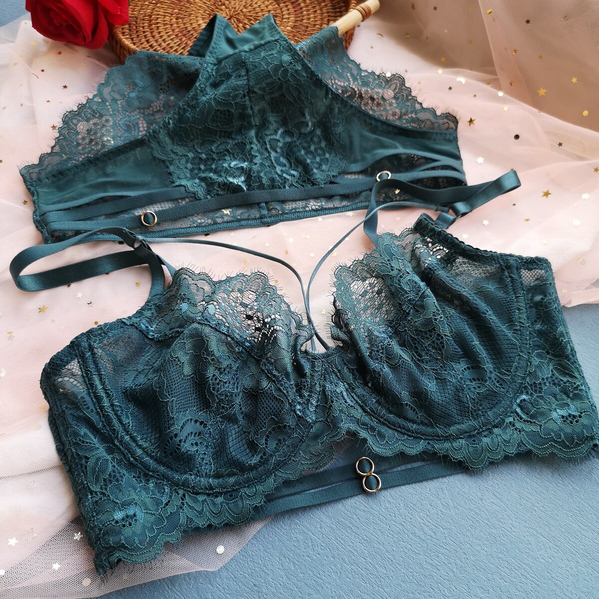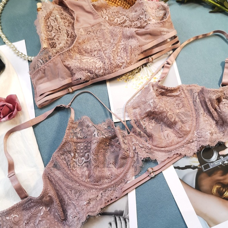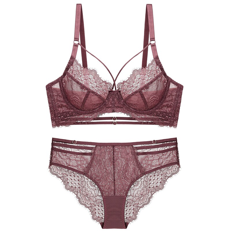 Xiao Fen ultra-thin bra large breasted with small and thin section to gather transparent Sexy lace with steel ring perspective lingerie suit Xia