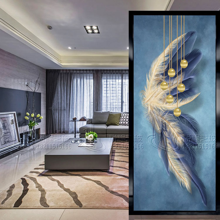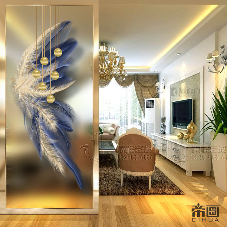 Modern Art Glass Screen Partition Wall Minimalist Home Decoration Entrance Living Room Aisle Genguan Toughened Light Transmission Feather