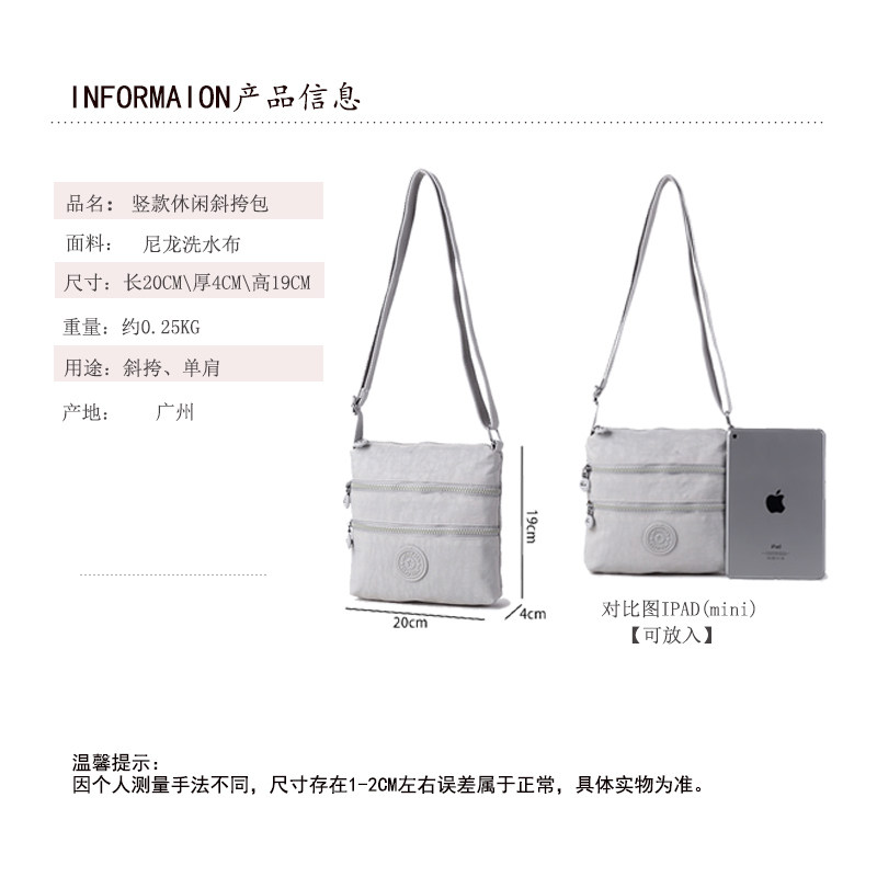 Crossbody bag women's vertical nylon cloth water-repellent simple, versatile, lightweight, multi-pocket, casual shopping, one-shoulder small cloth bag