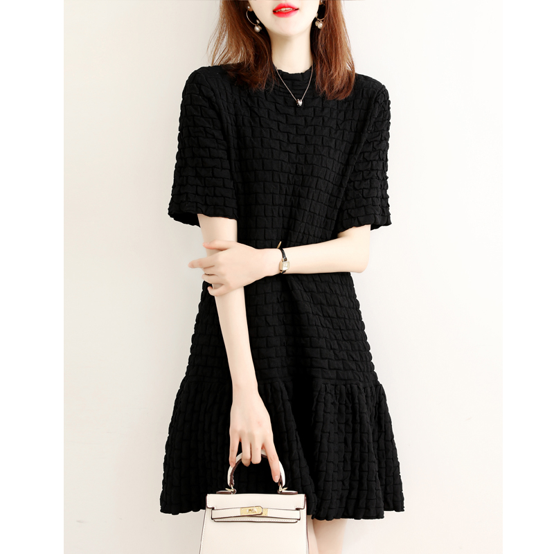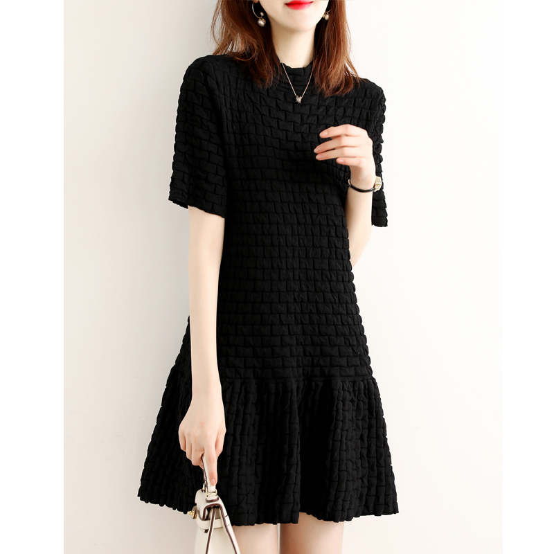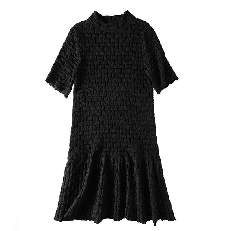 French high fashion sense three-dimensional knitted short-sleeved dress qun2020 new pleated loose A word qun