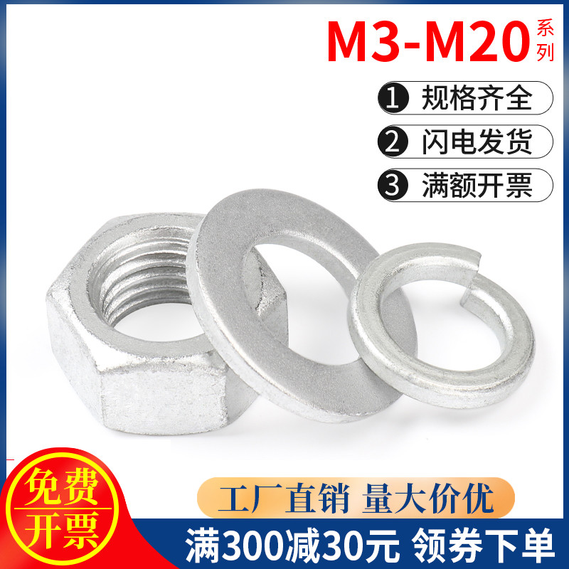 Dacromet hex nut flat washer spring washer M3M5M6M8M14M16M20 nut flat washer elastic washer