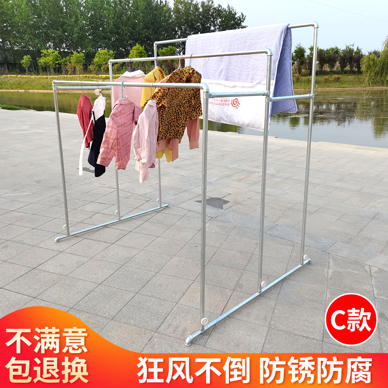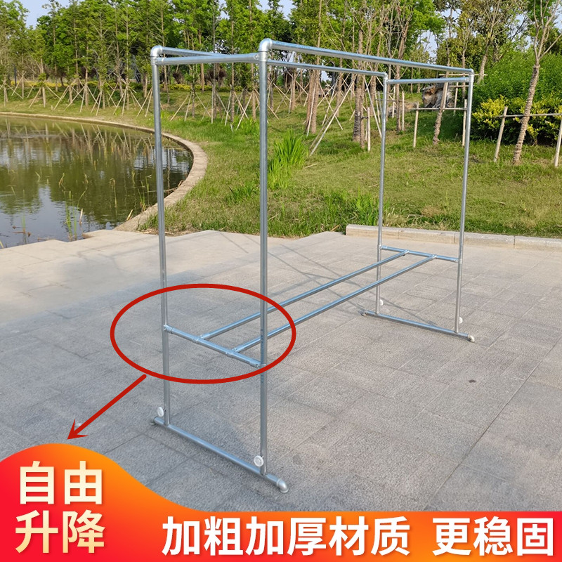 Galvanized steel pipe clothes hanger landing movable drying quilt rack thickened windproof balcony outdoor clothes hanger cool clothes hanger
